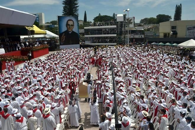 Decenas de miles de personas se congregaron en una plaza de la capital salvadoreña para participar en el acto de beatificación de Monseñor Óscar Arnulfo Romero, presidido por el Prefecto de la Congregación de la Causa de los Santos del Vaticano, Cardenal Angelo Amato.